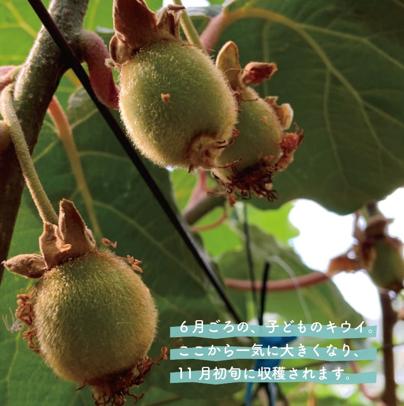 瀬戸内海・伊予灘の潮風としずむ夕日を存分に浴びて、すくすくと育った伊予市双海町のキウイ。